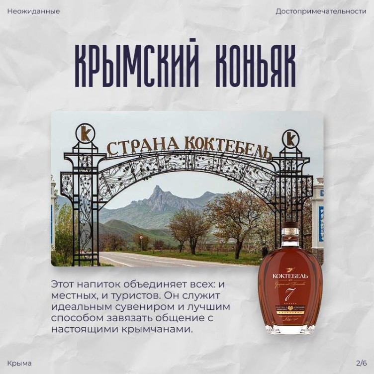 Крым известен не только морем и горами, но и своим коктебельским коньяком. Это один из символов полуострова, воплощающий в себе тепло крымского солнца и особый характер местных виноградников.