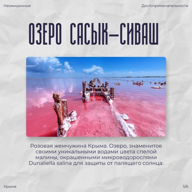 удивительное озеро Сасык-Сиваш. Его воды способны окрашиваться в розовый, а